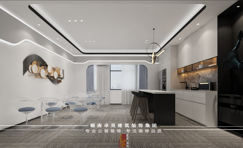 本案湖南工裝公司湖南卓昊裝飾為輕悅健康管理企業(yè)辦公樓裝修設(shè)計(jì)效果圖,辦公室設(shè)計(jì)面積2600平方,創(chuàng)意部門辦公空間設(shè)計(jì)繽紛多彩,分別以特殊肌理材質(zhì)打造一個(gè)個(gè)半封閉的“盒子”空間,由此構(gòu)建一個(gè)半開(kāi)放式的創(chuàng)意工作空間。高強(qiáng)度的工作自然更需要人性化的設(shè)計(jì)和細(xì)節(jié)考量。因此設(shè)計(jì)團(tuán)隊(duì)將大量空間打造成休閑放松和娛樂(lè)的功能。包括寧?kù)o的休息室、可以蕩秋千的會(huì)議室、健身中心、舒緩情緒的按摩桑拿浴室等。最受大家喜歡的是青青草坪階梯休閑區(qū),斜倚在草坪上,頂上的藝術(shù)吊燈如云朵般輕盈飄逸,輕松愜意的氛圍在心底慢慢蕩漾開(kāi)來(lái),遠(yuǎn)處的日落美景在眼中翩然變化,心卻漸漸歸于寧?kù)o。