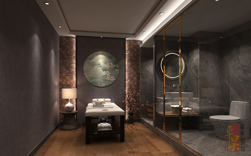 本案長沙工裝公司湖南卓昊裝飾集團為慕心SPA水療SPA會所裝修設(shè)計項目面積大約400平米,設(shè)計師用簡約的線條,巧妙的采用傳統(tǒng)手工藝技法,墻面運用木材、青磚、瓦片等材料外,地面則以金磚為主,利用這些中式元素將這一切回歸事物最質(zhì)樸的感動,使整個空間凝固在一種寧靜、安逸、平和的環(huán)境中,在這樣的空間里,置身于其中靜坐冥想,心中自然可感受到一種空寂與幽玄之美,思想仿佛在無限的精神空間里馳騁,從而更進一步融入到禪的簡素與清寂的世界之中,使浮躁的心情漸漸得到安靜