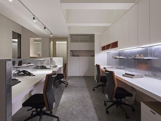 小辦公室裝修因面積的關(guān)系,設(shè)計(jì)師可以考慮在墻邊或拐角的位置設(shè)置書桌或者放置辦公設(shè)備的空間。這不僅有效的利用了空間,而且狐型的線條還給空間帶來了美感。書柜可以擺放在墻體的一側(cè),在中間設(shè)置一層抽屜。格局不一的劃分更能將不同規(guī)劃的文件及資料完好的分放,而且找尋的時(shí)候會(huì)更加容易。因辦公所用到的小工具以及資料較多,為了增強(qiáng)辦公效率。在辦公桌上可以放置一個(gè)文件盒,在選擇時(shí)要注意內(nèi)空的設(shè)置,大小空間要合理的搭配。筆筒可以考慮選擇水晶質(zhì)感的,透明的質(zhì)地更能讓員工心情舒暢。