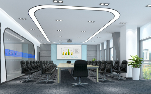 其中,層次感在形與色的主要表現(xiàn)形式是:形態(tài)上繁與簡的糅合、色彩上深與淺的搭配。比如公共辦公區(qū)的吊頂、墻面可以簡潔化處理,而前臺、會議室、領(lǐng)導(dǎo)辦公室等重點區(qū)域應(yīng)適當(dāng)?shù)倪M行造型設(shè)計,讓繁簡相融的層次感充斥于整個寫字樓。