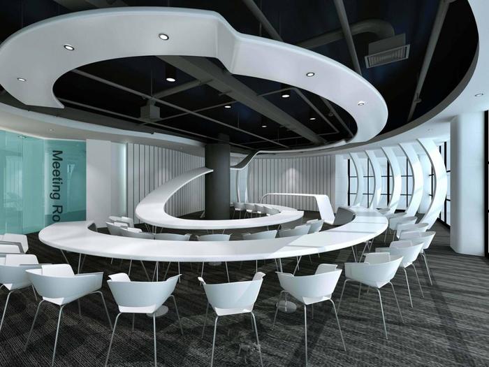2、會(huì)議桌:會(huì)議桌布置采用排式較好。辦公室裝修會(huì)議室同時(shí),為減少面部陰影,會(huì)議桌建議采用淺色桌面或桌布