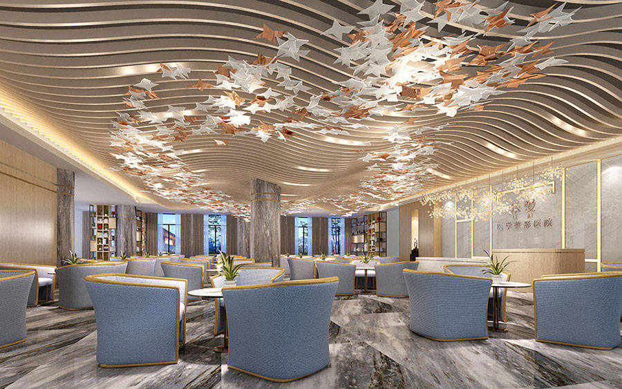 服務(wù)區(qū)是顧客待的時(shí)間最長(zhǎng)的地方,顏色一定要根據(jù)顧客喜歡的顏色來(lái)選擇,美容床、窗簾盡量選擇女性色彩,切忌不要用黑色。
