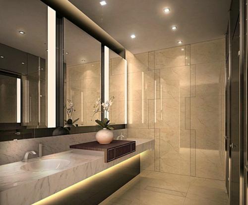 從一般吊頂高度而言,發(fā)達(dá)國(guó)家的家庭衛(wèi)生間大都較矮,而國(guó)內(nèi)不少住宅中,衛(wèi)生間的屋高等同于其他房間,所以為了避免空蕩、冷寂,一般吊頂高度可辦公室設(shè)計(jì)在2.2米-2.4米之間。在面積超過8平方米時(shí),不妨在洗面盆上方安裝化妝品柜,離水源較遠(yuǎn)處掛置儲(chǔ)衣箱,或劃出一塊地方做日常更衣之用。 衛(wèi)生間的色彩在色彩搭配上,衛(wèi)生間的色彩效果由墻面、地面展柜制作材料、燈光等融會(huì)組成。