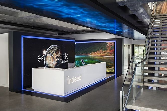 如何通過辦公室裝修打造一個(gè)非常獨(dú)特的功能空間呢?Indeed 科技公司新辦公室裝修設(shè)計(jì)的主要理念,是打造出一系列相關(guān)的功能空間(比如門廳、休息區(qū)等)。